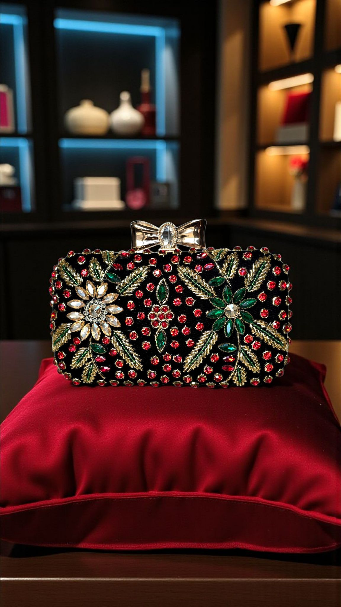 Hand made clutches made in Velvet fabric and hand embellished with stones and beads.